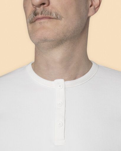 The front button placket adds a refined, classically inspired detail, reminiscent of the sobriety of the traditional shirt, but with the lightness and versatility of a premium T-shirt. Ideal to wear alone or under a light overshirt or blazer, it is a key piece for the modern man’s closet.